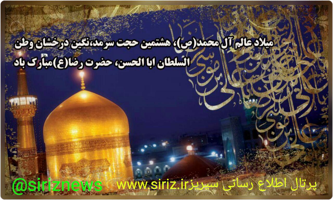 میلاد هشتمین حجت سرمد، نگین درخشان وطن ، السلطان باالحسن ،شمس الشموس ، خسرو اقلیم توس ، شاه انیس النقوس حضرت علی بن موسی الرضا برتمامی پیروانش به ویژه همشهریان عزیز مبارک باد.